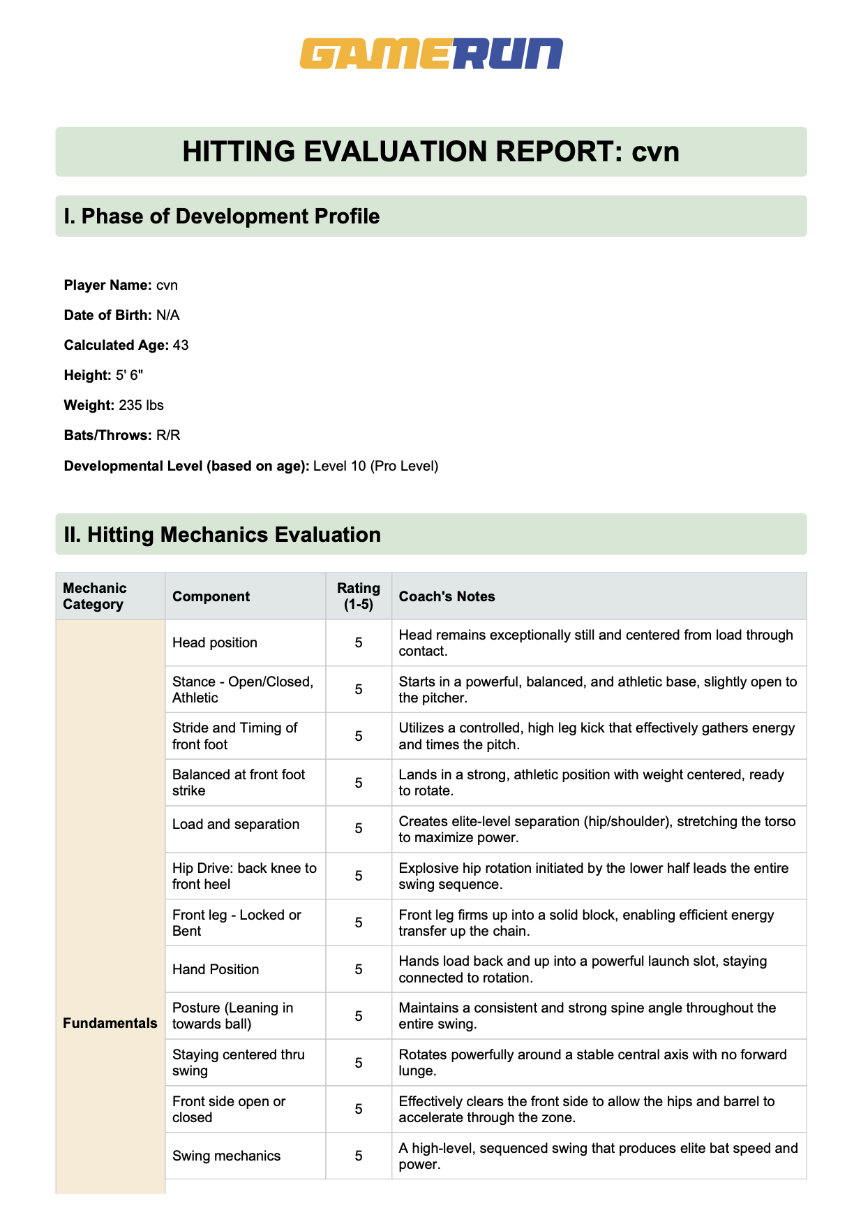 GameRunIQ will process your video. Within a few minutes, you’ll see a detailed analysis report with: