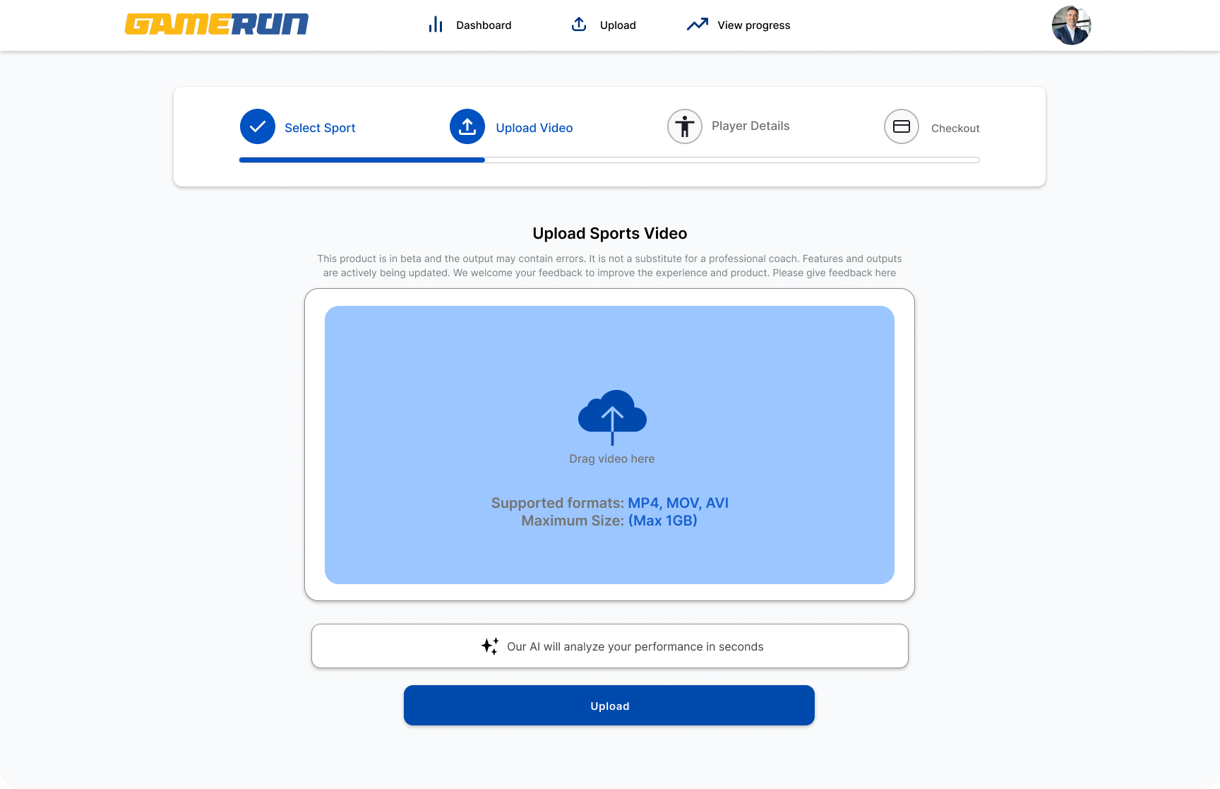 This guide walks you through the simple steps to upload your video, add player details, and receive AI-powered insights from GameRunIQ.