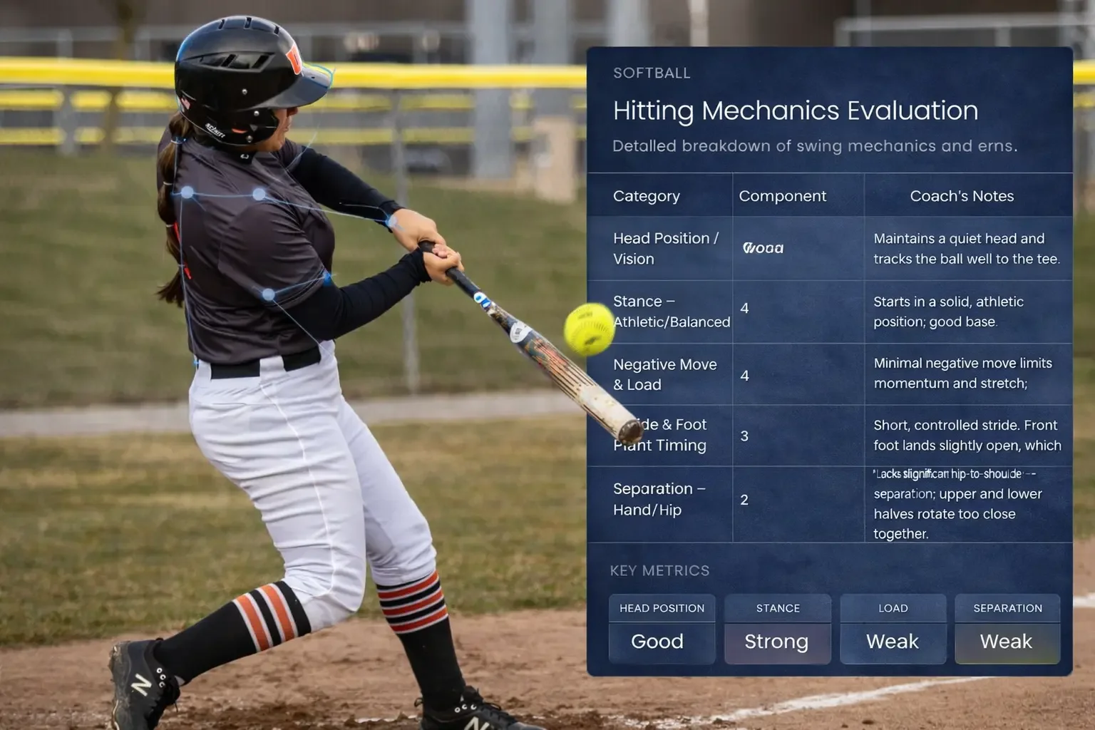 AI analyzes each player and generates a personalized, pro-level softball performance report.